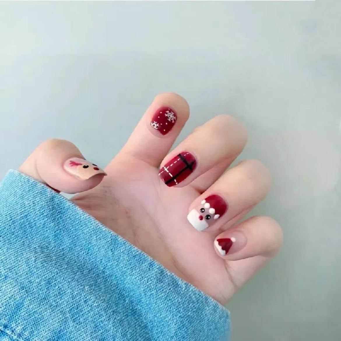 说明:圣诞爆款彩绘美甲(可根据喜好更换颜色),使用纯植物提取环保甲油胶,包含卸甲油胶,手部精修,不包含卸除光疗,水晶,延长甲及饰品等装饰物. 服务时长:90分钟 服务流程: 消毒清洁:手部清洁,服务工具进行消毒 卸除美甲:专业卸甲工具,卸除原有的甲油胶 打磨甲型:打磨指甲形状,达到合适的长度及形状 修剪指皮:使指甲边缘整洁粗抛甲面,使指甲表面平整并保持指甲健康亮度 环保甲胶:涂抹色胶,使指甲面呈现不同的色彩效果 绘制款式:制作款式,使甲面呈现不同的款式和效果 涂抹营养油:滋润指皮,防止起倒刺,干裂 涂抹手霜:滋润手部皮肤 服务保障: 8天修补:非长时间泡水、人为因素或酸性物质等原因造成脱落、起层、起翘、可联系美甲师免费上门修补。